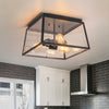 This 3-light lantern flush mount ceiling light combines modern design with industrial charm. Featuring a sturdy square frame finished in matte black. this cage ceiling light encases three E26 medium-base bulbs (not included) within a clear glass box. allowing light to shine freely and create a warm. inviting glow. Ideal for kitchens. entryways. closet. bathroom. bedroom. or dining areas. this 3-light clear glass square ceiling light adds a touch of farmhouse sophistication and minimalist edgy while providing bright. efficient lighting.