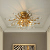 Exquisitely crafted and intricately designed. this luxurious crystal ceiling light brings a touch of sparkle and sophisticated allure to any space. whether it's your entryway. dining area. bathroom. bedroom. or foyer. The branch-like frame is adorned with dazzling cut crystals. evoking the image of a blooming crystal flower. Equipped with four G9 bulbs (not included) and available in either a brushed brass or polished chrome finish. this crystal semi-flush mount light emits a radiant glow that will surely enhance the character and beauty of any room.