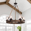 6-Light Wood Wagon Wheel Chandelier Modern Farmhouse