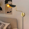Mounted on the wall with a circular backplate. this 1-light plug-in wall lamp features a half-folding round shade draped over a curved horizontal arm. resembling a lazy lotus leaf. Its adjustable design allows the arm to swing and pivot effortlessly. providing customizable lighting direction. The dimmable functionality. coupled with the included rotary switch. provides adaptable control for adjusting brightness levels. The satin black shade. complemented by aged brass details. creates a stylish eclectic contrast. seamlessly fitting into any décor style. Whether enhancing your living room. bedroom. bathroom. or foyer. this mid-century swing arm wall sconce serves as an exquisite addition. garnering compliments with its expressive design.Details