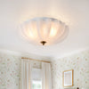 Boho Pleated Flower White Crackled Glass Semi Flush