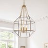 Introducing our 3-light round cage chandelier. inspired by the elegance of classic manor lanterns and incorporating the latest geometric trend. This exquisite lantern pendant will add sophisticated charm to any entry area. kitchen island. dining table. living space. stairwell. bathroom. bedroom. or foyer. Crafted from durable metal. it boasts a delicate polygon ball frame with clear glass panels on all sides. Inside this geometric cube cage. you'll find 3 candle-style light holders designed for E12 candelabra bulbs. providing a touch of traditional flair. When illuminated. it casts bright. unobstructed task lighting while creating intricate. interwoven shadow patterns that add captivating visual interest to the ceiling. The brushed brass finish adds a chic touch of French style to any decor. from modern farmhouse to mid-century. contemporary. minimalist. and Scandinavian. Bring timeless elegance and exquisite beauty to your space with our 3-light geometric lantern chandelier.