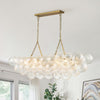 Grouped in stunning clusters. this modern bubble kitchen island pendant offers a strikingly romantic and fantasy visual. The centerpiece is a token of elaborate swirled ribbed glass globes arranged to adorn an island frame finished in a brushed brass finish. When turned on this bubble island chandelier. the lavish brass frame is enveloped in the warm embrace of lighting. cascading through each of the glass globes with beauteous fluidity like champagne. This brass cluster ribbed glass globe linear chandelier is the embodiment of timeless refinement and romance. ideal for enlivening any modern or classic living room. dining room. kitchen counter. or grand interior.