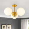 Elevate your space with this 3-light glass globe semi flush ceiling light. featuring a classic minimalist sputnik design. The flower-inspired bases. reminiscent of blooming daisies. add a touch of delicate and sophisticated elegance. complementing three glossy opal glass globe shades and polished antique brass finish. Perfect for entryways. kitchens. dining rooms. living rooms. bedrooms. or bathrooms. this milky glass globe ceiling light boasts an artful and alluring bubble design that will capture your eyes.Details