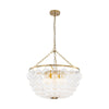 Brass Draped Ribbed Glass Bubble Round Pendant Chandelier