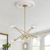 Experience the celestial charm of our 6-light bubble chandelier. where playful elegance meets stellar design. The slender linear arms. designed in an intersecting style and connected by glass spheres. create an intriguing constellation-like effect for this Sputnik light fixture. From any angle. the staggered structure forms different geometric shapes. exuding dynamic allure. The clear glass globes add a touch of ethereal elegance. refining the celestial aesthetic of the chandelier. Ideal for enhancing a dining area. kitchen island. entryway. living room. bathroom. or foyer. this Sputnik glass globe chandelier serves as a creative and exquisite showstopper for any space.