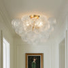 Cluster Rippled Textured Glass Bubble Semi Flush Chandelier