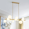 Travel through the realm of mid-century modern luxury and French extravagance with this 12-light sputnik island pendant chandelier. The brushed brass linear frame sets a stunning stage for an array of white glass spheres in various sizes. accented with clear crystal embellishments that evoke the ethereal beauty of bubbles. The glossy opal glass orbs bring high-end sophistication and a subtle shine. even when the lights are off. When illuminated. the lustre milky glass gently diffuses light from G9 bulbs (not included). casting a warm. inviting glow that creates a cozy. romantic ambiance. Ideal for open spaces. this opal glass globe linear chandelier creates an exquisite showstopper for enhancing dining rooms. kitchen islands. bars. counters. restaurants. studios. and more.