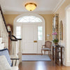 Merging mid-century elegance with modern design. this glass flush mount ceiling light is a perfect addition to an entryway. dining room. bedroom. kitchen. bathroom. or foyer. Elegantly coated in matte brass. this round ceiling light fixture showcases a wide. bowl-shaped shade made from smooth. semi-opaque alabaster glass. exuding a luxurious and timeless charm. With three E26-base bulbs (not included) nestled within its soft. milky-textured glass. this brass alabaster glass ceiling light emits a warm. inviting glow that enhances ambiance and adds visual comfort to any space.