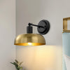 Featuring a wide. shallow metal shade suspended from a sturdy short arm. this single wall light draws inspiration from classic barn lighting with a modern twist. The matte black finish paired with brushed brass accents brings a refined industrial look that suits a variety of interiors—from farmhouse and mid-century to contemporary styles. Perfect for illuminating hallways. kitchens. bathrooms. or reading corners. this versatile metal dome wall lamp offers warm. focused lighting while serving as a stylish accent to your walls. Durable and timeless. it's a smart blend of function and design.