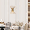 Highlighted by a timeless brass or chic nickel finish. our mid-century wall sconce provides a transitional light texture to your decor. Crafted by metal. this starburst-inspired wall sconce features many slender lines from the central baser radiate slightly and conically upwards and downward. Behind the decorative linear shade accommodating two E12 candelabra bulbs (not included) up to 40W separately up and down. this sunburst wall sconce offers ambient lighting to your space. Highly recommend mounting this up down wall light in your living room. dining room. bedroom. foyer. entryway. sink and corridor for both lighting and style.