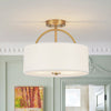 Mid-Century Brass Wide Linen Drum Semi Flush Mount
