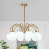 Experience the perfect fusion of mid-century elegance and dreamy romance with our glass globe chandelier. Reimagining the classic sputnik design with an inviting bubble element. this stunning round chandelier boasts graceful goose arms that stretch to support adorable milky white glass balls below. The result is a dynamic fixture reminiscent of a group of playful and energetic milky bubbles. elegantly suspended in mid-air. Available in chic brass or black finishes. this frosted glass globe bubble chandelier casts a cozy and ambient glow. enhancing the atmosphere of your living room. dining room. bedroom. foyer. or entryway.Details