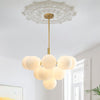 Lead whimsy and fantasy to the spaces of your modern home with this cluster globe chandelier. Descending from the ceiling is a height-adjustable downrod with stretching arms at the bottom. 5 or 13 dreamy milky glass globes gather below like a chic bunch of creamy balloons. Each globe accepts a G9 bulb (not included) inside to offer cozy ambient lighting. This beautiful glass globe chandelier displays a gracefully artistic way of yielding brilliant results in your living room. dining room. bedroom. foyer. or entryway.