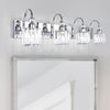 Sparkle like the diamonds. this crystal wall light is a stunning enhancement to your bathroom. dressing space. or living area. Supported by a rectangle backplate and goose arms. the cylindrical shades are made of chic K9 crystal prisms. The mirror-polished chrome finish adds radiance and charm to this vanity wall sconce while the black and gold finish injects an air of grandeur into the look. Accommodated E26-base bulbs (excluded). this bathroom light fixture shows an elegant. brilliant result whenever you flip on the light switch.Detail