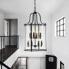 Striking a perfect balance between vintage farmhouse charm and contemporary minimalism. this lantern pendant light effortlessly complements any decor style. Featuring a cylindrical cage with a matte black finish and clear glass shade. this 8-light lantern chandelier showcases clean. simplified lines that blend industrial flair with a modern twist. Inside the clear glass cage. the 2-layer candle-style socket accommodates E12 candelabra bulbs (not included). offering a traditional silhouette and effective task lighting. Ideal for elevating the ambiance of a kitchen island. dining room. entryway. bedroom. foyer. or living area. this wide glass cylinder lantern pendant is a sought-after choice.