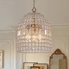 Bound to infuse a touch of French opulence and glamorous elegance into your decor. our crystal cage chandelier serves as both a light source and a stunning piece of art. Inspired by a traditional bird cage. this lantern chandelier features an open frame with a sleek dome top. adorned with beautiful cut crystals and delicate bead strands. It is painted in distressed gold to evoke an antique brass texture. adding a classic shabby chic vibe. Inside the cage. one or three E26 bulbs (not included) cast a warm light that envelops the vintage frame. streaming through the dazzling crystals with a sparkling grace. This exquisite crystal cage chandelier exudes an unparalleled level of romantic refinement. making it the perfect enhancement for a modern living room. entryway. dining room. bathroom. or bedroom.
