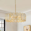 Transform any interior into a harmonious blend of contemporary flair and luxurious mid-century allure with this stunning crystal pendant light. Crafted with a chic brass finish. this 6-light chandelier boasts an elegant array of faceted crystals arranged in a unique. staggered fashion. creating a wide drum cage with a creative. ladder-like edge. When lit. this gorgeous crystal drum cage chandelier casts a dazzling light overhead. adding a radiant glow that effortlessly enhances your entryway. dining room. living room. bathroom. bedroom. or foyer.